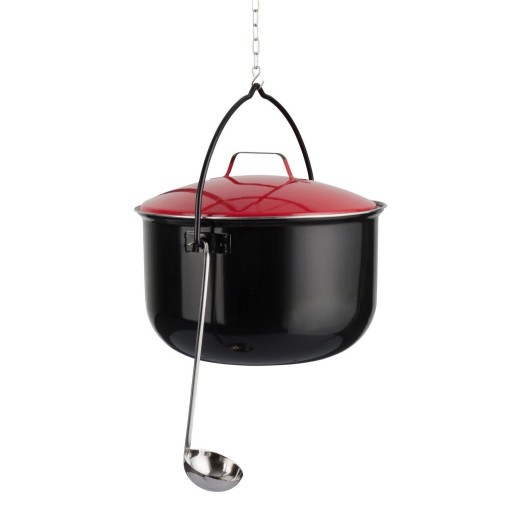 Kociołek węgierski, emaliowany z uchwytem do podwieszenia.