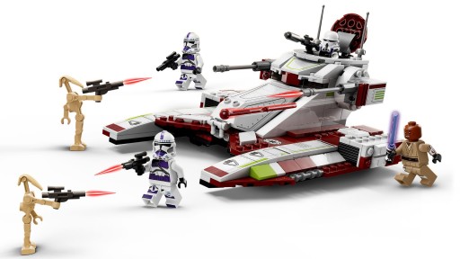 Fani filmu „Gwiezdne Wojny: Wojny klonów” mogą odtworzyć ekscytujące starcia między żołnierzami-klonami ze 187. legionu Mace’a Windu i droidami bojowymi, budując model czołgu bojowego Republiki z zestawu LEGO® 75342. Ma on ukryte koła, które dają wrażenie unoszenia się w powietrzu, dwa podnoszone działka sprężynowe, a na górze stanowisko obserwacyjne dla dowódcy. W komplecie są także cztery minifigurki LEGO: Mace Windu oraz dowódca i żołnierze ze 187. legionu klonów w wersjach dostępnych od maja 2022 r., a do tego dwa droidy bojowe i różne rodzaje fajnej broni.