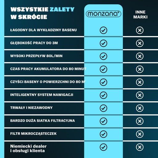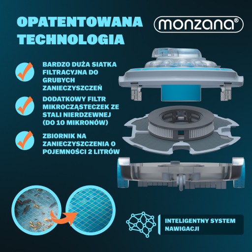 Pływanie, nurkowanie lub relaks na leżaku - wszystko to możesz zrobić, podczas gdy inteligentny Poolboy wykonuje swoją pracę. Automatyczny robot basenowy Monzana® do dużych i małych basenów czyści całkowicie bezprzewodowo dzięki potężnemu silnikowi ssącemu na głębokości roboczej do 3 metrów.