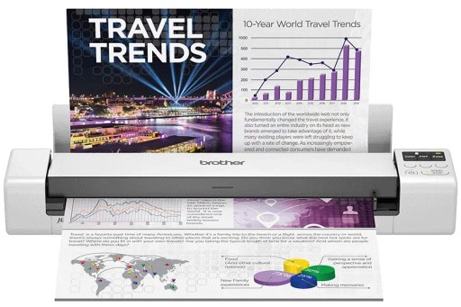 Skaner Brother DS-940DW z serii DSmobile został zaprojektowany z myślą o elastyczności. Konfiguracja tego urządzenia jest łatwa, dzięki wyposażeniu we wbudowany akumulator, Wi-Fi oraz intuicyjny wyświetlacz LCD. Cyfryzacja dokumentów jest możliwa zarówno w biurze, jak i poza nim, nawet przy ograniczonej przestrzeni.