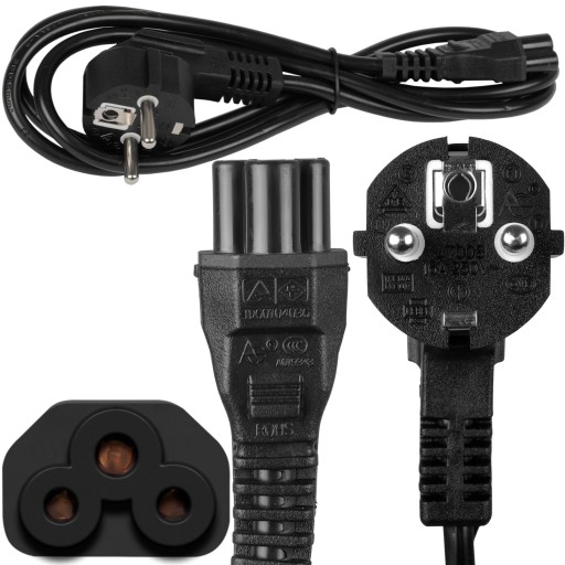 Wykonany z materiałów wysokiej jakości przewód zasilający BLOW typu "koniczynka" o długości 1,5 m przeznaczony do zasilaczy do laptopów.