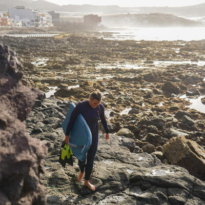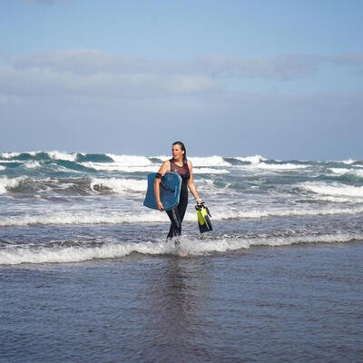 Rozmiar bodyboardu wpływa bezpośrednio na jego stabilność i zwrotność. Konieczne jest dostosowanie rozmiaru do gabarytu użytkownika. Ten bodyboard 500 jest dostępny w 4 rozmiarach, zależnie od wzrostu użytkownika: Rozmiar 38" jeśli masz między 135 a 155 cm wzrostu, Rozmiar 40" między 155 a 170 cm, Rozmiar 41,5" między 170 a 185 cm, Rozmiar 43,5" powyżej 185 cm. Zbyt mały bodyboard nie będzie miał wystarczającej wyporności, a przez to nie złapiesz fali. Zbyt duży bodyboard będzie mało sterowny.