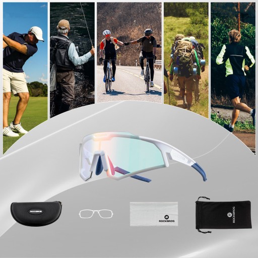 Soczewka fotochromowa wykonana z materiału PC jest w 100% odporna na promieniowanie UV400 i może blokować szkodliwe promienie UAV i UAB. Podczas jazdy w silnym świetle słonecznym okulary samoistnie przyciemniają się dzięki czemu skutecznie chroniąc oczy i zapewniają komfort użytkowania. W zestawie znajdują się dodatkowe oprawki na szkła korekcyjne oraz praktyczne etui.