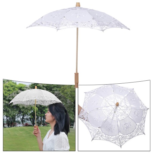 MATERIAŁ: Koronkowy parasol wykonany jest z koronki, drewnianej rączki i ramy ze stopu, mocnych i trwałych.