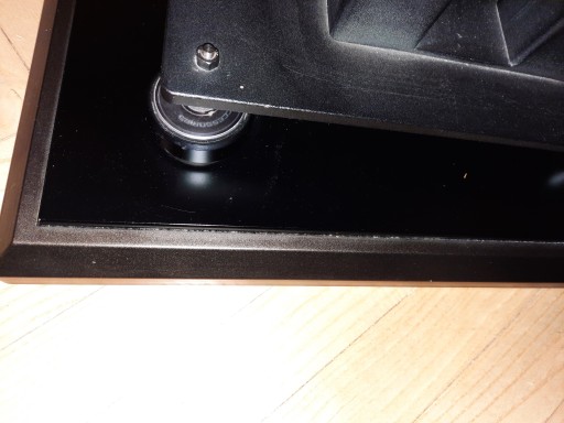 Konstrukcja pływajaca,górna płyta spoczywa na wypełnieniu z cząstek naturalnego kryształu,Wibracje z górnej płyty są przenoszone do podstawy i eliminuja drgania których energia mechaniczna ulega przemianie- pochłanianiu i zamianie na energię cieplną. Zatem tylko niewielkie wibracje ulegają przeniesieniu na podłoge co skutkuje znaczacym uporządkowaniem sceny,poprawą holografii a najważniejsze oderwanie sceny od podłogi i jej podniesienie zblizając wrażenie lekkości dźwięku wysokich kolumn, podobnego do sceny którą tworzą monitory.