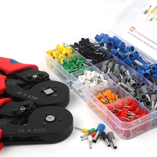 Siedem różnych rozmiarów miedzianych platerowanych końcówek do montażu na linkach elektrycznych. Zabezpieczają przewód przed utlenianiem i rozczapierzaniem włókien wewnątrz zacisku - czym istotnie zmniejszają ryzyko awarii i pożaru.