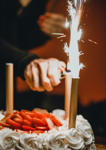 ▶️ Umieścić racę pionowo, ostrym końcem w miękkim, niepalnym podłożu (np. tort lub piasek)