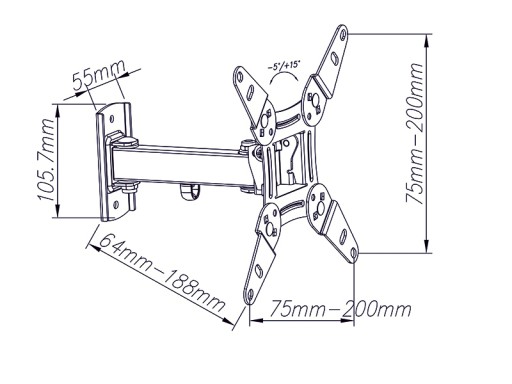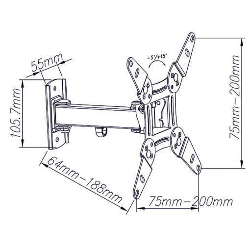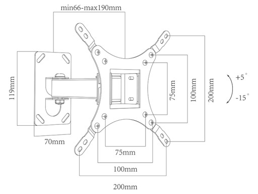 - Standard VESA: 75x75 mm; 100x100 mm; 200x200 mm;