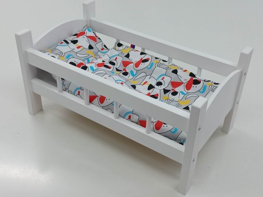 ŁÓŻECZKO DREWNIANE BIAŁE dla lalek + POŚCIEL Materiał drewno tkanina