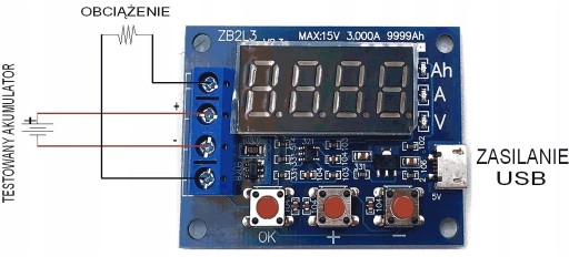 Moduł pozwalający przetestować pojemność akumulatorów różnego typu: