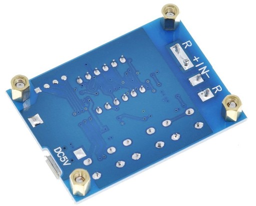 - Podłącz akumulator do złącz IN+ i IN-. Uwaga na polaryzację. Odwrotne podłączenie może uszkodzić miernik, oraz ogniwo!