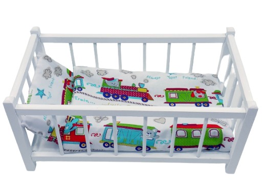 BIAŁE DREWNIANE ŁÓŻECZKO DLA LALEK + POŚCIEL 3 elementy