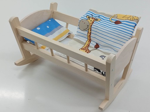 KOŁYSKA DREWNIANA dla lalek NIEMALOWANA + POŚCIEL Wiek dziecka 2 lata +