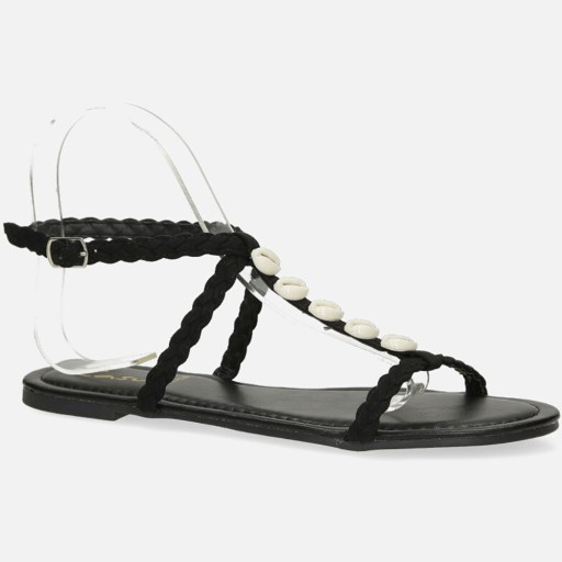 Czarne sandały płaskie z muszelkami Casu SN20X1/B