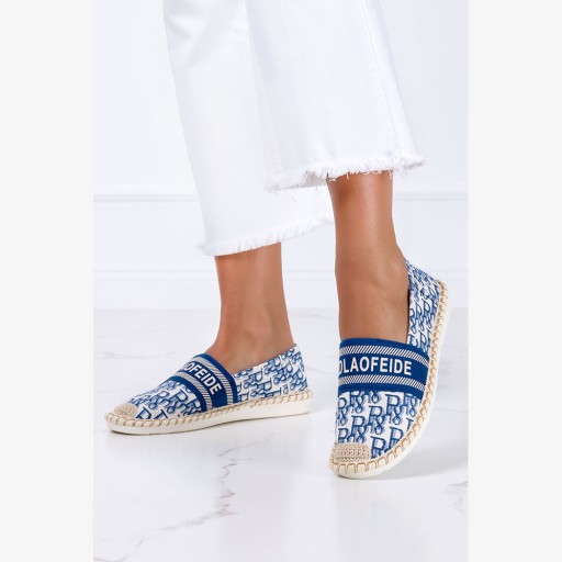 Niebieskie espadryle z napisami slip on Casu NB538P