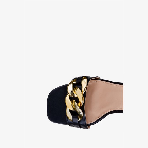 Czarne sandały na słupku ze złotym łańcuchem z paskiem wokół kostki Casu D22X1-B