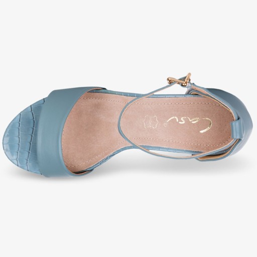 Niebieskie sandały Casu na ozdobnym słupku z zakrytą piętą paskiem wokół kostki ze skórzaną wkładką ER20X2-BC
