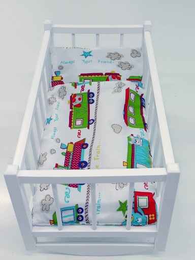 KOŁYSKA DLA LALEK BIAŁA DREWNIANA + POŚCIEL 3el