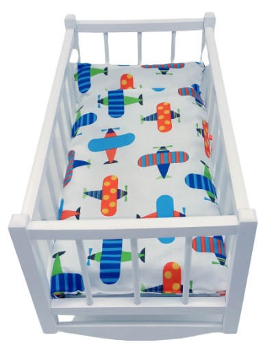 KOŁYSKA DLA LALEK BIAŁA DREWNIANA + POŚCIEL 3el