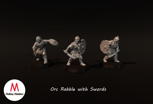Orc Rabble with Sword and Shield - x3 - Figurki LOTR MESBG Middle Earth - Medbury Miniatures - 3D Monkey