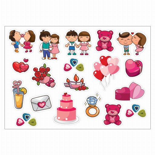 - Naklejki wycięte ploterem na 1 arkuszu folii, dzięki temu goście bez problemu je odkleją.
