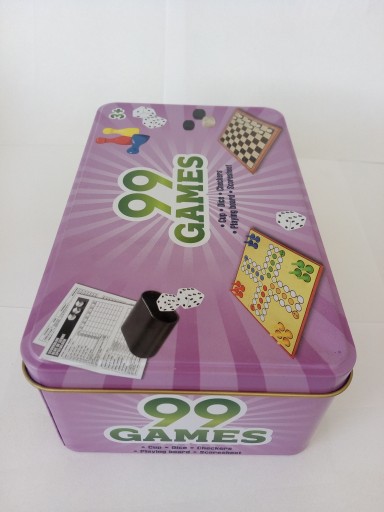 Dzięki tej poręcznej puszce, w której znajduje się aż 99 gier, już nigdy nie będziesz się nudzić, zawiera m.in. grę chińczyk, warcaby, kości.
