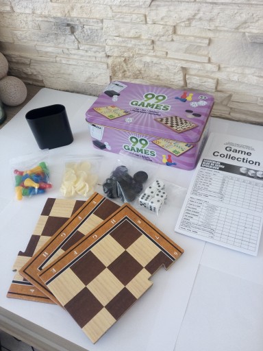 Dzięki tej poręcznej puszce, w której znajduje się aż 99 gier, już nigdy nie będziesz się nudzić, zawiera m.in. grę chińczyk, warcaby, kości.