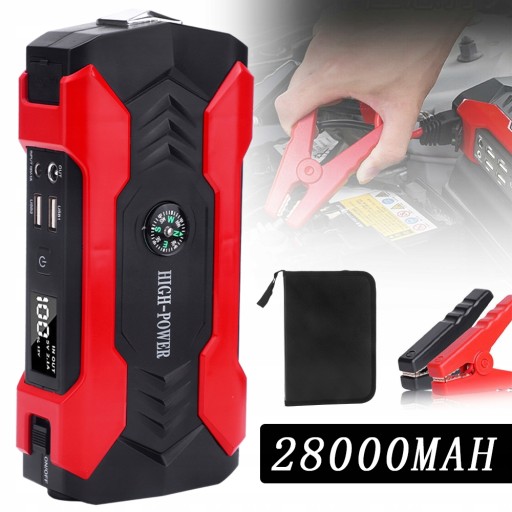- -Dzięki pojemności 28000 mAh i maksymalnemu prądowi szczytowemu 800 A, rozrusznik samochodowy może bezpiecznie uruchomić samochód, SUV, ciężarówkę lub furgonetkę do 6,0 l silników benzynowych lub 2,0 l diesla około 30 razy przy pełnym naładowaniu w ciągu kilku sekund.