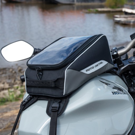 MEGA dobrej jakości duża torba na bak twojego motocykla. Torba doskonale nadaje się na schowanie drobnych przedmiotów typu okulary przeciwsłoneczne, smartfon, dokumenty, szmatka do czyszczenia wizjera, portmonetka i inne niezbędne rzeczy. Tank Bak jest renomowanej firmy moto-detail. Wyposażony w silne magnesy i odpinane paski z pętelkami, pasuje do wielu zbiorników stalowych, plastikowych i aluminiowych.