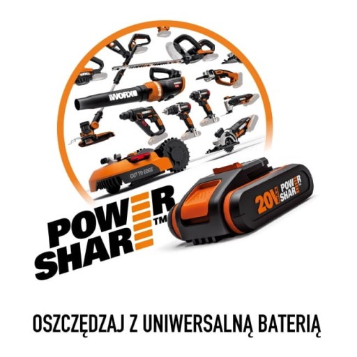 - Obszary zastosowania: narzędzia Worx PowerShare o mocy 20 V