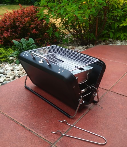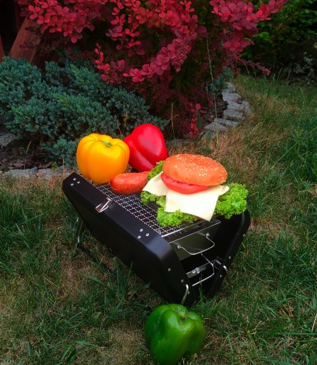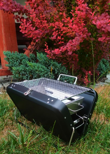 - Wystarczy złożyć grill w kształt walizki, a jego niewielkie wymiary (31 cm długości, 22,8 cm szerokości) pozwalają na swobodne umieszczenie go w plecaku podróżnym.