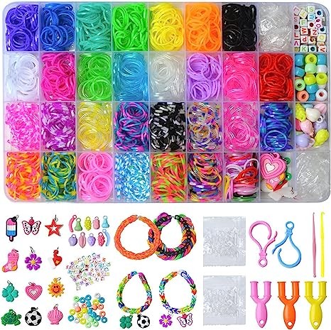 Kreatywny zestaw składający się z ok. 2000szt gumek i zawieszek do robienia biżuterii zarówno dla dziewczynek jak i chłopców. Kolorowe bransoletki można dowolnie komponować w wybranych przez siebie motywach i kolorach.