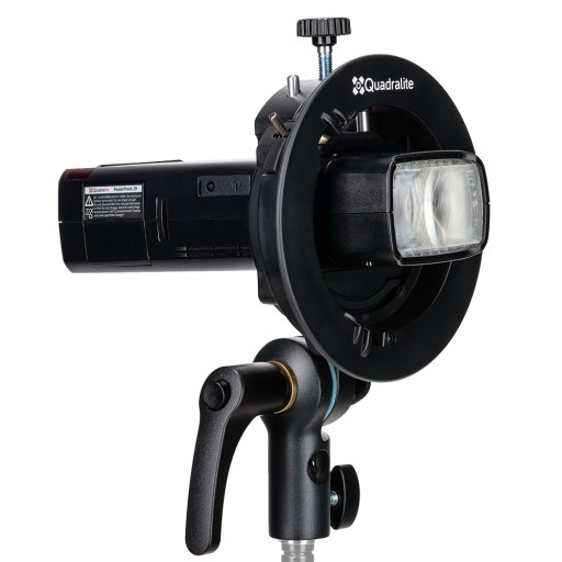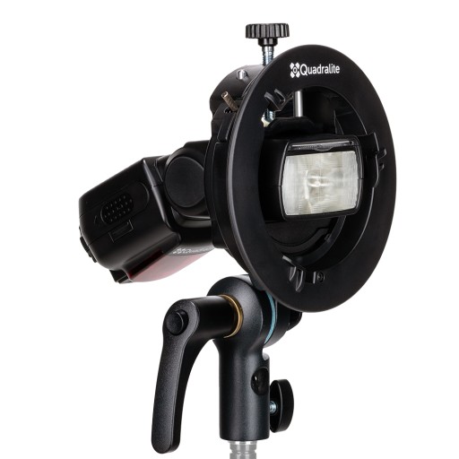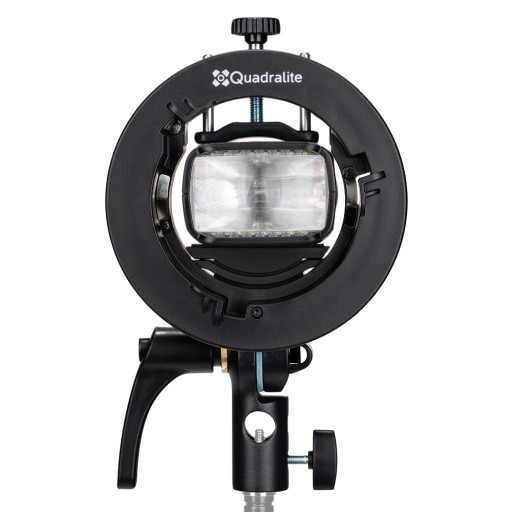 Quadralite Reporter S2-holder to lekki i poręczny uchwyt do lamp reporterskich typu speedlite, który pozwala korzystać z modyfikatorów światła do lamp studyjnych z mocowaniem Bowens.