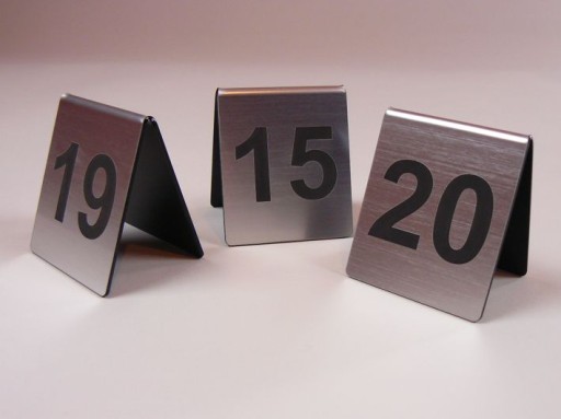 Numerek na stół SREBRNY SZCZOTKOWANY A6 w kształcie odwróconej litery V wykonany jest z laminatu grawerskiego o grubości 1,6 mm.