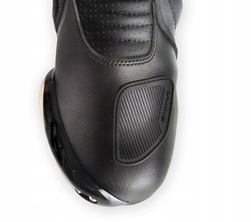Buty RSX-6 to sportowy but o ergonomicznie pochylonej konstrukcji dopasowanej do pozycji motocyklisty. Na boku znajduje sie slider TPR. Poprzecznie wzmacniana podeszwa w systemie SafeFoot. Specjalna syntetyczna nakladka umieszczona z przodu buta pozwala precyzyjniej obslugiwac dzwignie zmiany biegów.
