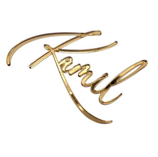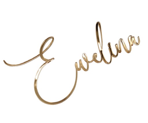 Dekor z imieniem na bok tortu to niezwykły dodatek, który doda blasku i elegancji twojemu wyjątkowemu przyjęciu. Wykonany ze złotej lustrzanej plexi, doskonale prezentuje się na torcie, dodając mu unikalnego charakteru.