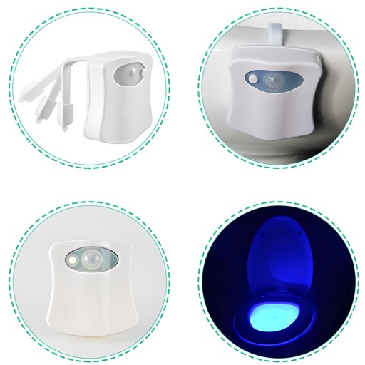 Lampka toaletowa LED to praktyczny gadżet, który sprawdzi się w każdym domu. Posiada zawieszkę, która pasuje do każdego rodzaju miski toaletowej. Lampka toaletowa posiada aż 8 kolorowe podświetlenie, które możesz zatrzymać na dowolnym kolorze lub zostawić aby zmieniała kolor w trybie automatycznym. Dzięki czujnikowi ruchu, automatycznie uruchomi się gdy tylko będziesz zbliżał się do swojej toalety.