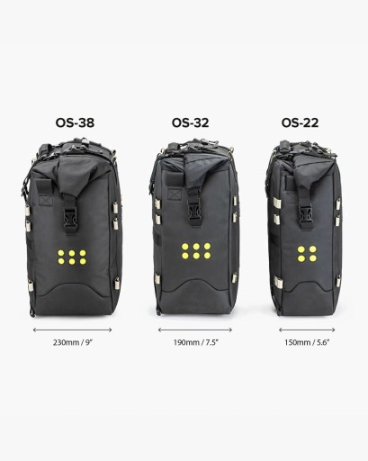 Nowy model posiada dodatkowe 6 litrów pojemności i ma o 40 mm szerszy profil względem OS-32. Zaprojektowana do sparowania z OS-32 lub OS-22 dla motocykli z niesymetrycznie zamontowanymi stelażami pod sakwy ze względu na umiejscowienie wydechu, lub do użycia jako para z OS-38
