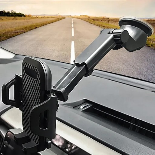 Jeden z najbardziej popularnych sposobów montażu uchwytu na telefon. Ten typ uchwytu cechuje duża uniwersalność. Pozwala w łatwy sposób zamontować uchwyt w dogodnym miejscu na szybie czołowej. Pozwala ustawić telefon w takim miejscu, aby kierowca nie odrywał zbytnio wzroku od drogi, oraz ułatwi namierzenie pozycji GPS.