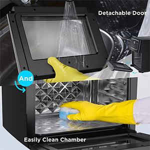 Drzwi są przeznaczone do odłączania w celu łatwego czyszczenia, otwierania drzwi zatrzymuje cykl gotowania, zamknij drzwi wznowią wcześniej zaprogramowany cykl gotowania. Co więcej, można włączyć światło i oglądać posiłki gotować przez przezroczyste i termiczne drzwi ochronne.