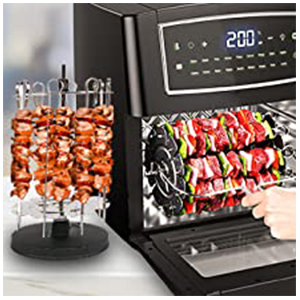 W zestawie 10 akcesoriów obejmuje szczypce rotisserie, pręt rotisserie, kratka do piekarnika, tacka ociekowa, szpikulce, klatkę rotisserie, płytki kosz z siatki i dwie tace z siatki; wszystkie akcesoria można myć niewielką ilością nieściernego mydła i niemetalicznej gąbki.