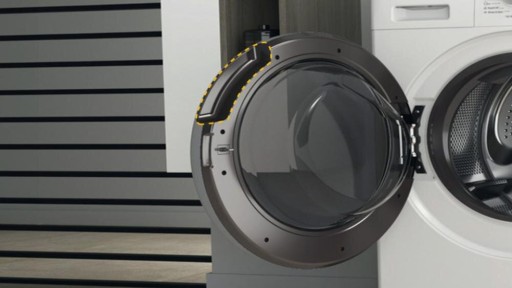 Wygląd i konstrukcja urządzenia z pewnością zasługują na uwagę. Prostota wykonania to jeden z atutów pralko-suszarki, bo dzięki temu wpasuje się ona do każdego wnętrza. Funkcjonalność w wyglądzie urządzenia wykazuje z pewnością zintegrowany i ergonomiczny uchwyt, ułatwiający otwieranie drzwiczek.