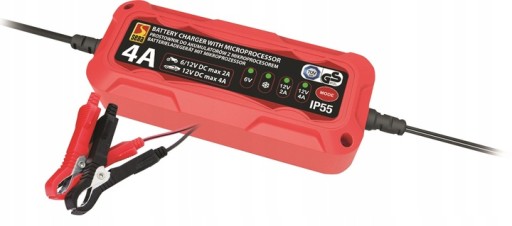 Automatyczny prostownik 4A przeznaczony do ładowania wszelkiego typu akumulatorów 6V i 12V: samochodowych, żelowych, kwasowo-ołowiowych mokrych, AGM i MF o pojemności 1,2 - 120 Ah.