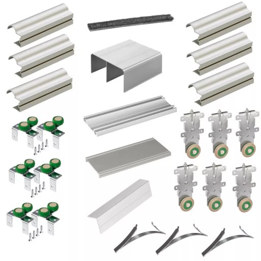 System okuć do drzwi przesuwnych Sevroll Focus 18 II do budowy 3 skrzydeł, do wnęki o szerokości do 2,35m i wysokości do 2,70m.