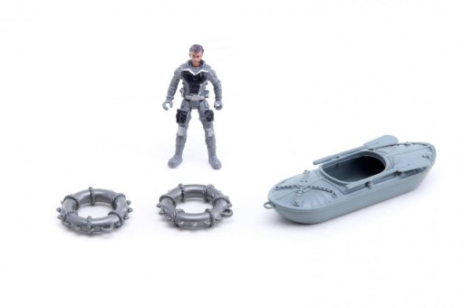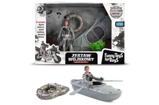 W ZESTAWIE: FIGURKA ŻOŁNIERZA OK. 11 CM., PONTON Z WIOSLAMI, 2 KOLA RATUNKOWE, AKCESORIA, WYM. OPK: 24 X 17 X 7 CM., 3+