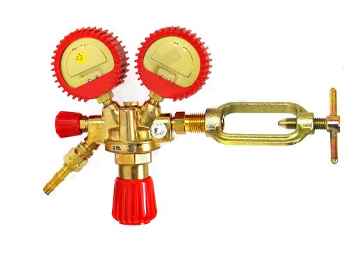 Reduktor wysokiej jakości z dwoma zaworami, manometrami oraz ze standardowymi przyłączami. Zalecany do półautomatów spawalniczych różnych typów.