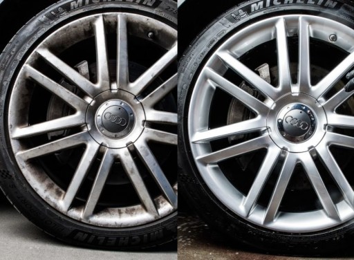 - Równomiernie spryskać płynem całą powierzchnię czyszczonej felgi.