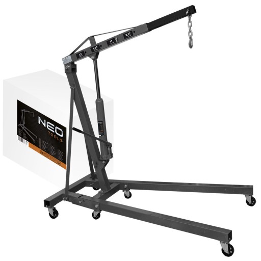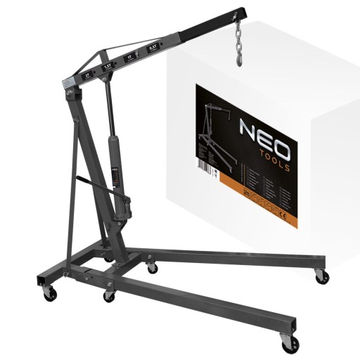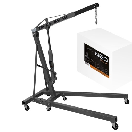 Podnośnik warsztatowy NEO (nr ref. 11-720) typu żuraw. Solidna stalowa konstrukcja umożliwia podnoszenie elementów o wadze do 2 t. Podnośnik wyposażony jest w skrętne koła ułatwiające manewrowanie. Zakres wysokości podnoszenia od 25 do 2382 mm. Zgodność z europejskimi standardami bezpieczeństwa zapewnia certyfikat CE. Marka NEO spełnia oczekiwania profesjonalistów.