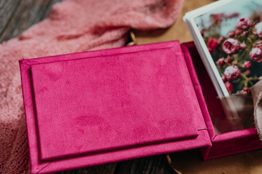 Aksamitne, welurowe pudełko na zdjęcia 10x15 cm, z personalizacją grawerem