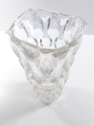 - Szklany wazon na kwiaty z falistym teksturowanym wzorem, idealny do wystroju sztuki współczesnej.
